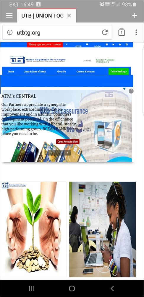 UTB은행 계좌개설을 요구하며 웹사이트 utbtg.org 접근할것을 강요하더라구요.
